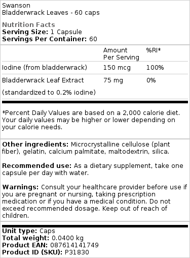 Bra värde och 2 för 1 gör det enkelt att dela. Ganska säker på att det finns andra användningsområden för denna ört än sköldkörteln. Inte mitt mål, men som en gåva är det ett bra påstående. Verkar vara ett knepigt villkor att tillfredsställa så klagomålen kommer att vara höga i recensionerna här. Inte säker på att jag kommer att göra det men snart igen men är som en nål i höstacken på den här sidan, så det passade bra att köpa. STOR källa till jod! Om du inte vill ta jod i form av kaliumjod-piller, prova detta. Ingen orolig mage eller dålig smak. Jag kommer att fortsätta att ta detta eftersom jag inte tar en multi som har en daglig tillförsel av jod. Tack Swanson!