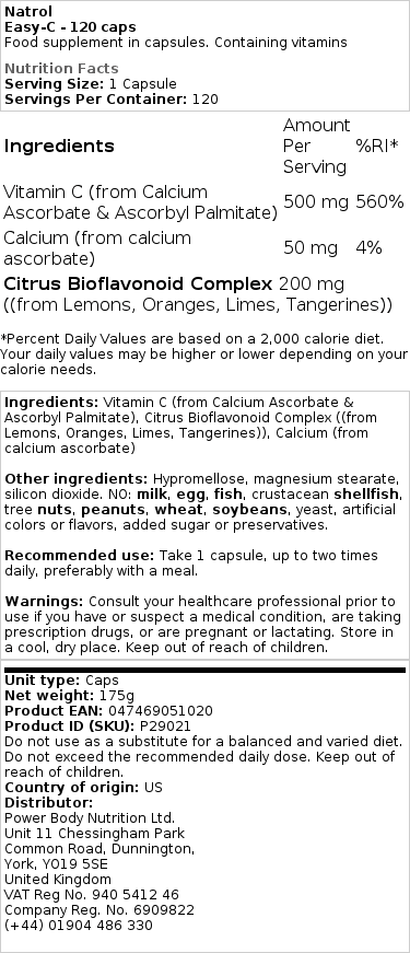 - Vitamin C (kot kalcijev askorbat in askorbil palmitat) – 500 mg