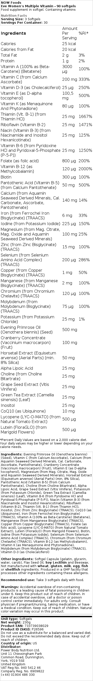 Eve Women’s Multiple Vitamin je posebej zasnovan za izpolnjevanje prehranskih potreb žensk. Vsebuje širok spekter vitaminov in mineralov, ki so ključni za zdravje in dobro počutje žensk. Poleg tega pa je obogaten z edinstveno mešanico rastlinskih izvlečkov, ki podpirajo žensko telo na naraven način.