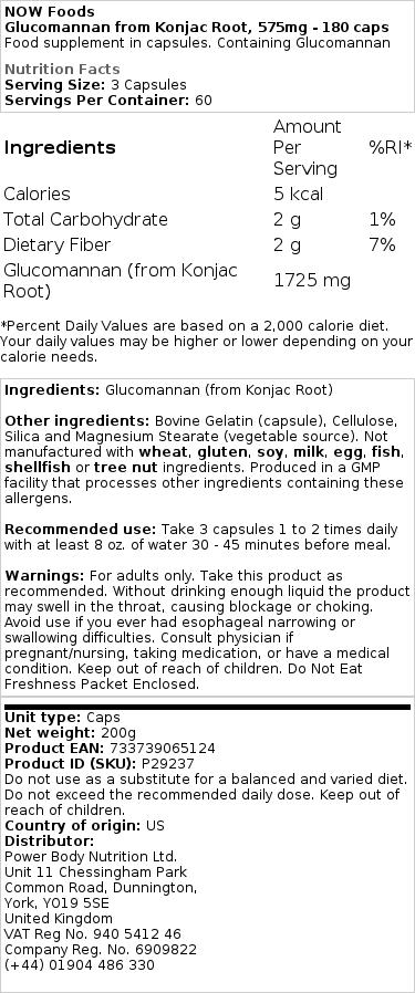 Glukomanan iz korenine Konjac, 575 mg – 180 kapsul