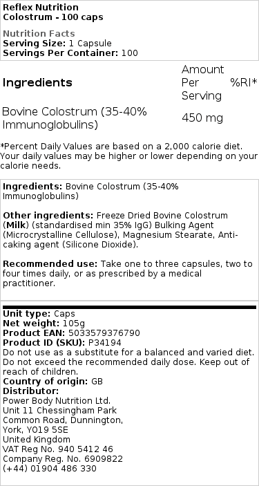 Råmjölk är det näringstäta innehållet i mjölk när den först utvinns från en ko. Dess så full av näringsämnen, och därför är helmjölk så bra trots att den är mer kalori, näringsämnena och vitaminerna är oslagbara. Tack och lov är dessa reflex-kolostrumtabletter från hormonfria mjölkextrakt så att du bara får det bästa. En fantastisk källa till CLA för fettförbränning och allmän hälsofrämjande näringsämnen 🙂