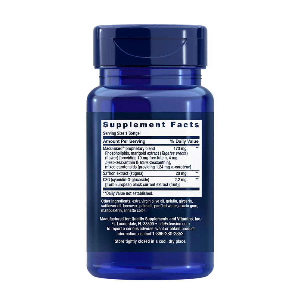 Life Extension MacuGuard Ocular Support with Saffron – 60 mehkih gelov Prehransko dopolnilo v mehkih gelih. Vsebuje izvlečke