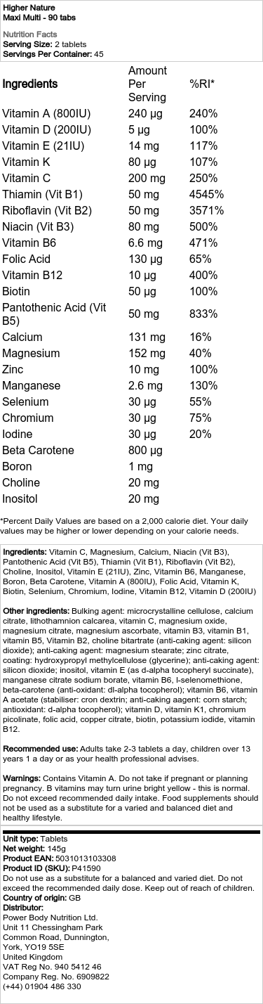 Higher Nature Maxi Multi – 90 tablet