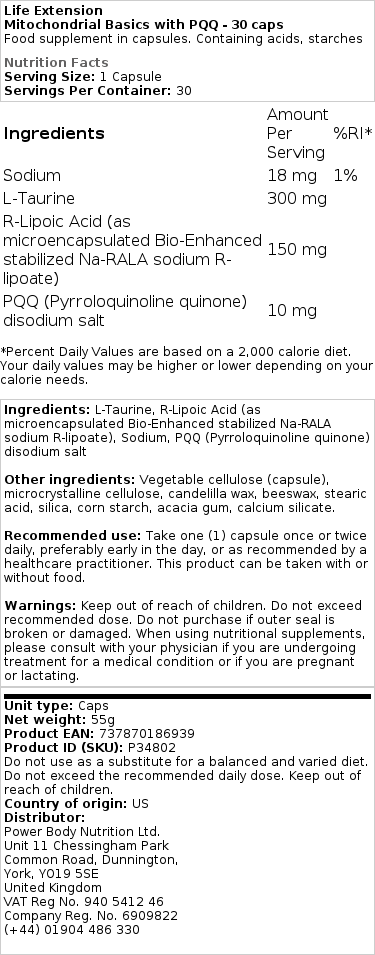 Mitohondrijske osnove s PQQ – 30 kapsul