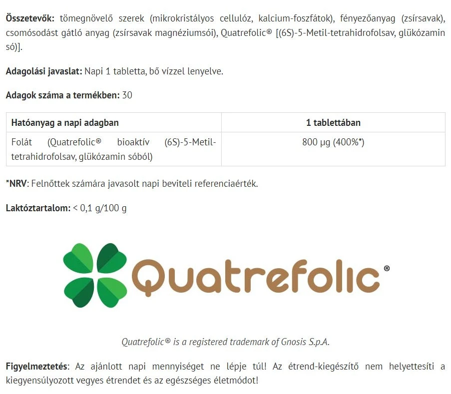 Natur Tanya – Bioaktivni folat, 30 tablet
