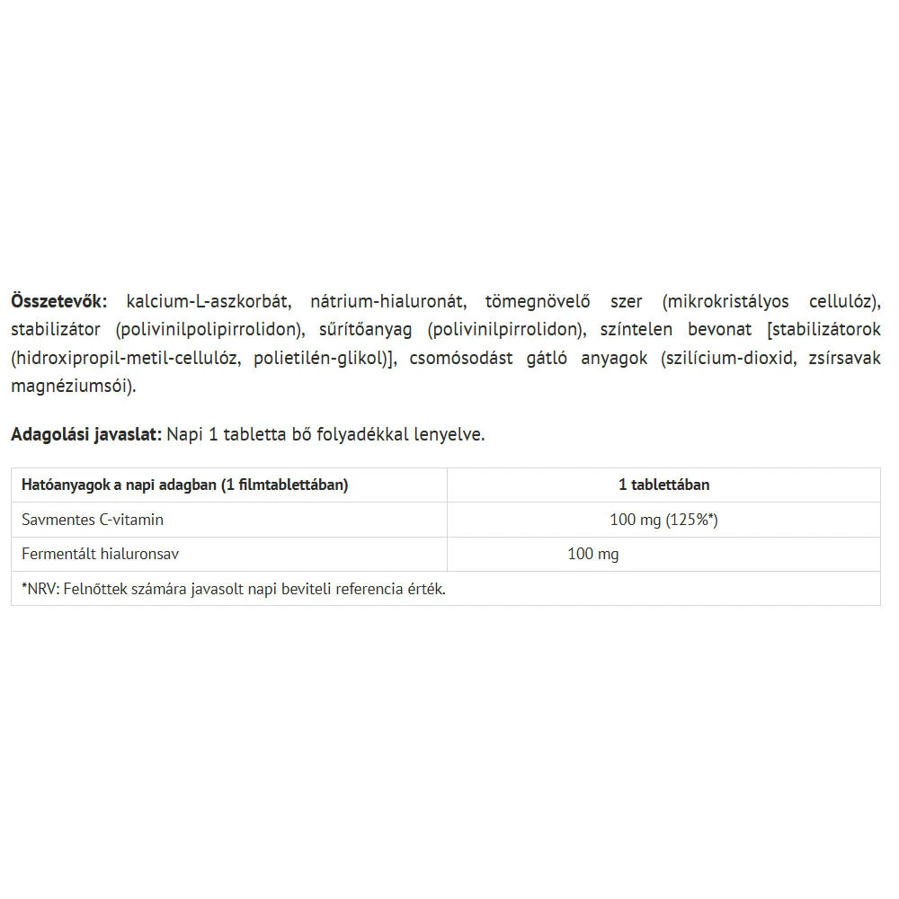 Prehranski dodatek Natur Tanya Fermented Hyaluronic Acid je izdelan iz kakovostnih naravnih sestavin.V pakiranju prejmete 30 tablet, kar omogoča enostavno in priročno uporabo.