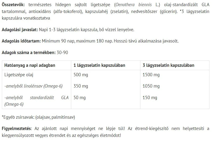 Glavne sestavine: Izdelek vsebuje olje večernega jegliča, pridobljeno s standardiziranim postopkom za zagotavljanje visoke čistosti in konsistence.
