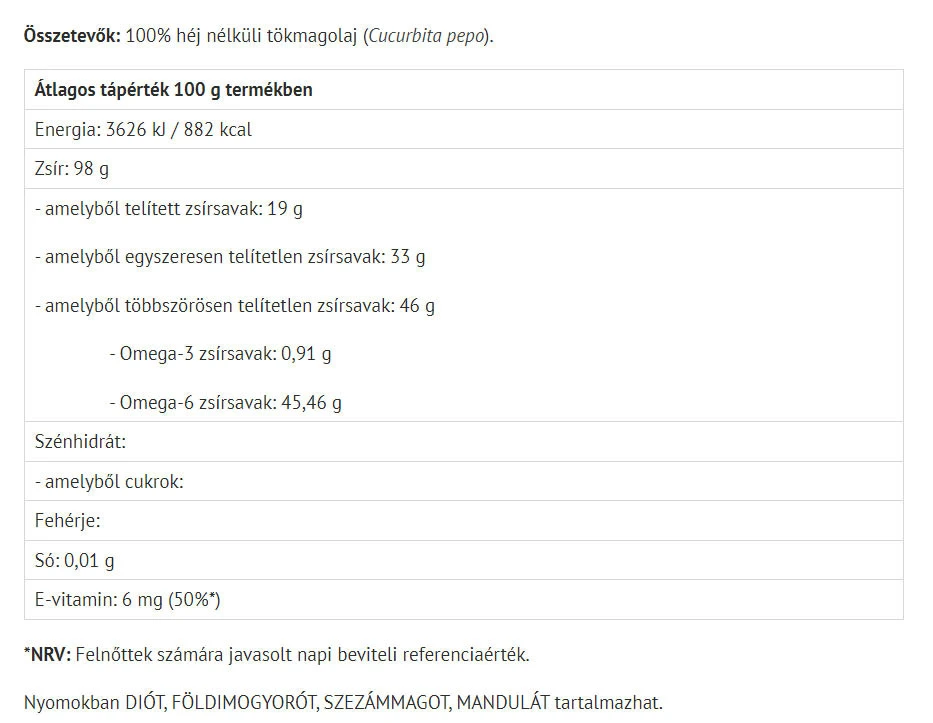 Izdelek je narejen iz čistega bučnega olja, pridobljenega s hladnim stiskanjem, kar omogoča ohranjanje naravnih lastnosti semen. Bučna semena so znana po svoji bogati zlati barvi in aromatičnem okusu, ki dodaja poseben čar vsaki jedi.