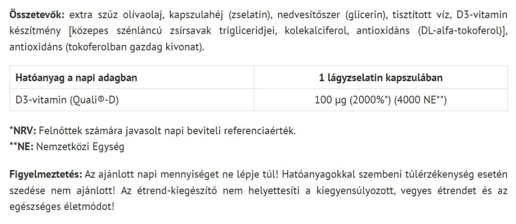 Natur Tanya Olive D3-Vitamin - 4000 IU (50 Softgels)