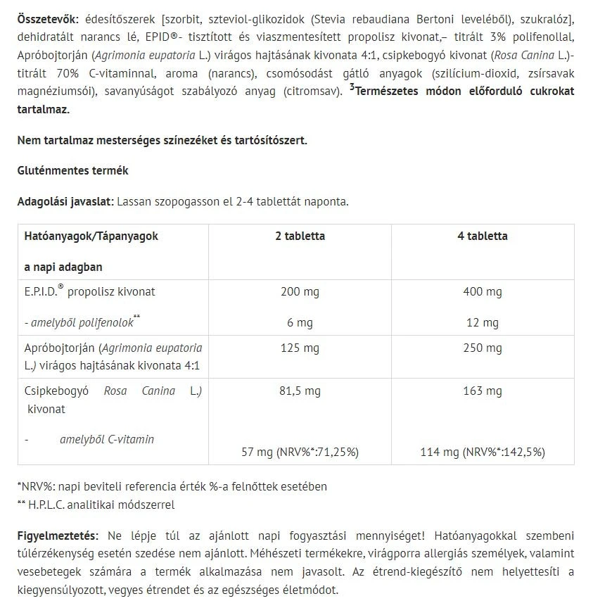 Natur Tanya S. EPID propolis Pill with Vitamin C (20 db, Orange)