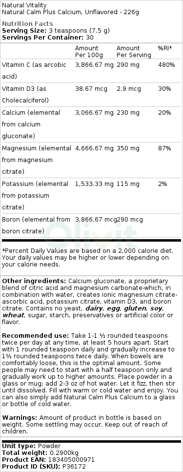 - Kalcij (iz kalcijevega citrata)