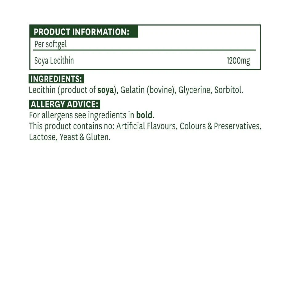 Prehranski dodatek Natures aid Soya Lecithin je izdelan iz visokokakovostnih naravnih sestavin. Vsaka mehka kapsula vsebuje 1200 mg sojinega lecitina, pridobljenega iz soje. Ta naravna snov je znana po svoji čistosti in naravnem izvoru.