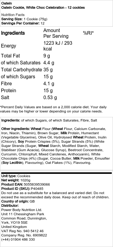 Oatein Cookie, White Choc Celebration – 12 piškotkov