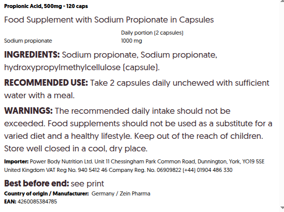 Za najboljše rezultate priporočamo redno uporabo Zein Pharma Propionske kisline. Izdelek je primeren za vegetarijance in ne vsebuje umetnih barvil, arom ali konzervansov. Za več informacij o izdelku se posvetujte z zdravnikom ali farmacevtom.