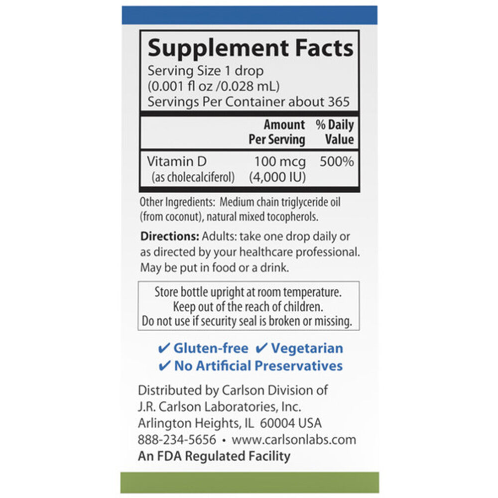 Za več informacij o izdelku Super Daily D3, 4000 IU – 10 ml, obiščite spletno stran Carlson Labs ali se posvetujte s svojim zdravnikom.