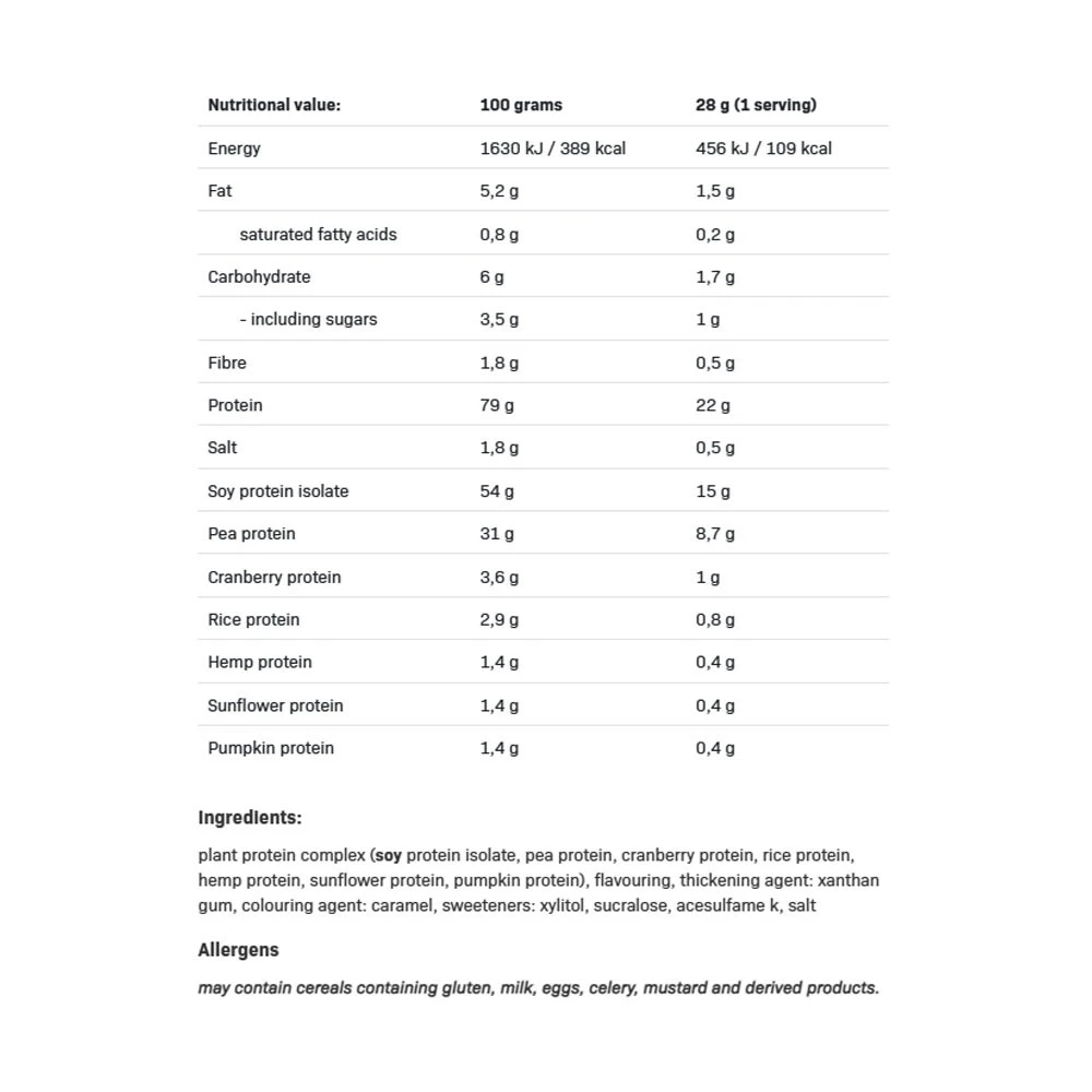 - Mešanica rastlinskih beljakovin (rižev protein, grahov protein, konopljino seme)