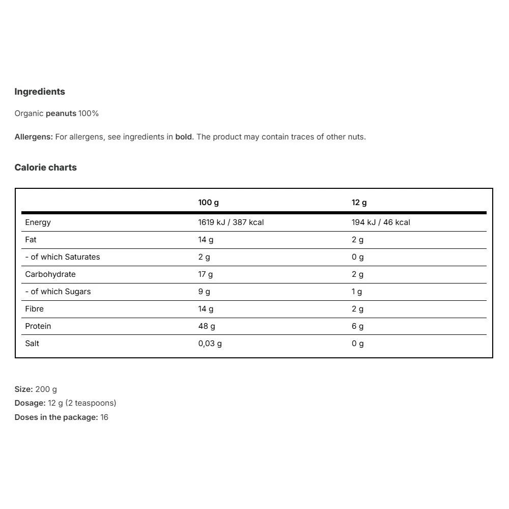 Idealen za ljubitelje naravnih sestavin in tiste, ki iščejo visokokakovosten prehranski dodatek brez umetnih dodatkov. Vilgain organic Peanut Butter Powder predstavlja praktičen način za uživanje arašidovega masla z manj maščobe ter večjo mero prilagodljivosti pri kuhanju in peki.