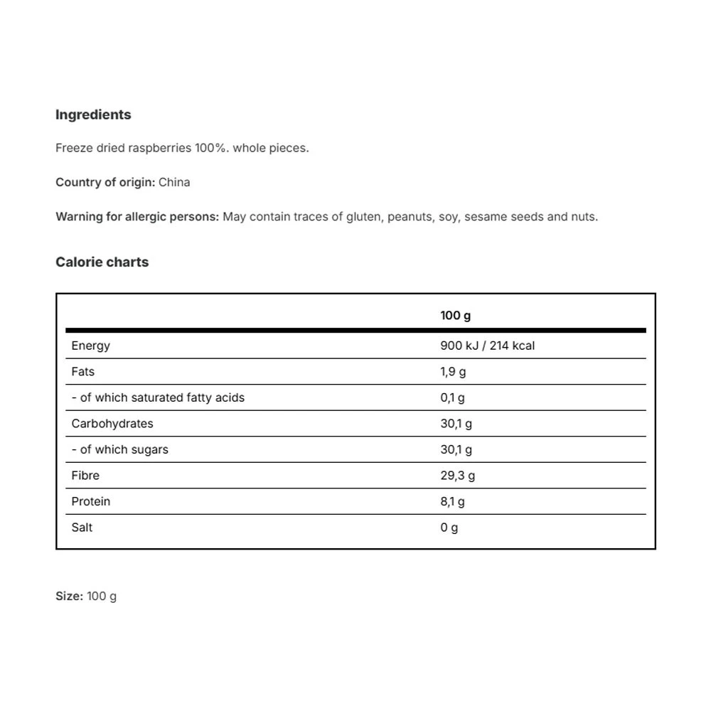 glavne sestavine: 100% liofilizirane maline.