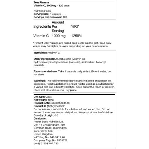 Ta izdelek je popolna izbira za vse, ki želijo okrepiti svoj imunski sistem in se zaščititi pred prostimi radikali. Vsaka kapsula vsebuje 1000 mg čistega vitamina C, ki je znan po svojih antioksidativnih lastnostih in pomaga pri ohranjanju zdravja in dobrega počutja.