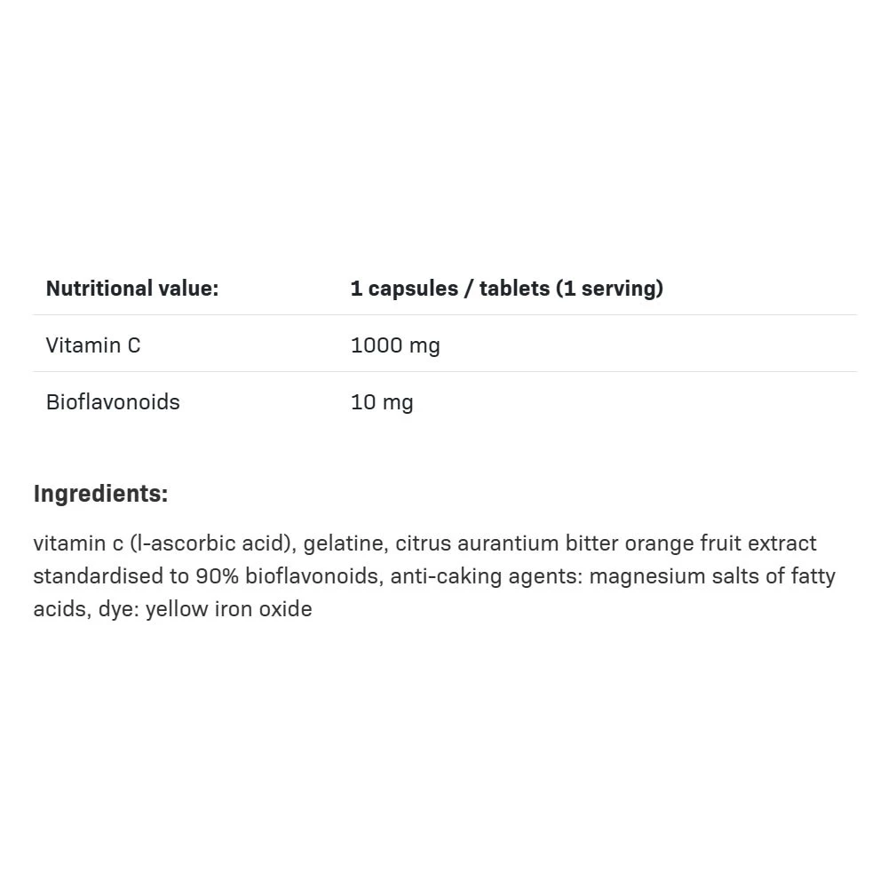 Ta izdelek je odličen vir vitamina C, ki je ključnega pomena za zdravje in dobro počutje. Vsaka kapsula vsebuje 1000mg vitamina C, kar je več kot pri večini drugih podobnih izdelkov na trgu. Poleg tega pa je obogaten še z bioflavonoidi, ki povečajo absorpcijo vitamina C in tako zagotavljajo še večje koristi za vaše telo.