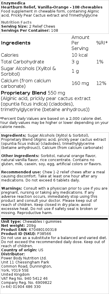 Zdravilo proti zgagi, Vanilla-Orange – 42 žvečljivih tablet je odlična izbira za vse, ki se spopadajo z zgago in želijo naravno in učinkovito rešitev. S svojo hitro delujočo formulo, brez GSO in primernostjo za vegane, je to zdravilo primerno za vsakogar. Zaščitite svoj požiralnik, nevtralizirajte odvečno kislino in obnovite svoj prebavni trakt z Zdravilom proti zgagi, Vanilla-Orange – 42 žvečljivih tablet. Poskusite ga danes in se znebite neprijetne zgage enkrat za vselej!